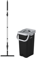 с отжимом и ведром 10л/7л двухкамерное, 2 насадки микрофибра, карманы с 2-х сторон, рукоятка 134-154см черный