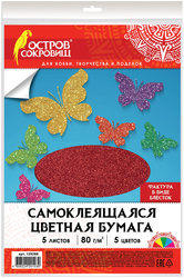 5 листов, 5 цветов, А4, мелованная самоклеющаяся, 80 г/м2