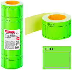 Ценники самоклеящиеся BRAUBERG Цена, 50х40 мм, зеленый, 5 рулонов по 200 шт
