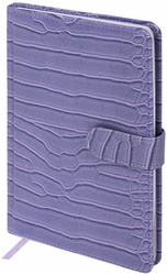 Внутренний блок включает 64 листа тонированной бумаги плотностью 70 г/м2. Благодаря стандартному формату А5 еженедельник удобно использовать как в офисе, так и на выездных деловых встречах. Твердая обложка, стилизованная под кожу крокодила, фиксируется магнитной застежкой, поэтому еженедельник не откроется в сумке или портфеле и страницы не помнутся. Подходит для горячего тиснения. Дополнением является закладка-ляссе, с помощью которой при необходимости можно быстро открыть еженедельник на нужной странице. Помимо прочего, еженедельник снабжен обширным справочным материалом. Выполнен в ярком сиреневом цвете.