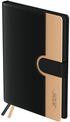 Ежедневник датированный на 2026 год BG "Glace" является идеальным выбором для тех, кто ценит комбинацию элегантности и прочности. Твёрдая обложка выполнена из экокожи двух контрастных цветов: чёрного и светло-коричневого. Эффект soft-touch придаёт особую изысканность и делает ежедневник более роскошным и притягательным.
