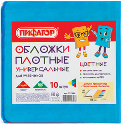 Обложки ПВХ для учебников малого формата ПИФАГОР, комплект 10 шт. ЦВЕТНЫЕ, плотные, 100 мкм, 230х450 мм, универсальные