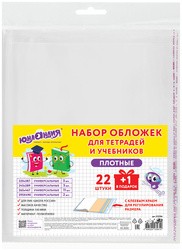 Обложки ПЭ для тетрадей и учебников ЮНЛАНДИЯ, набор «22 шт. + 1 шт. в подарок», плотные, 100 мкм, универсальные, прозрачные