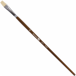 Изготовлена с применением щетины чунцинского борова. Кисть отличается универсальностью в использовании, обусловленной упругостью ворса и прекрасными впитывающими свойствами пучка. Длинная ручка из древесины покрыта лаком, что защищает ее от воздействия красок и влаги. Форма пучка – плоская. Ширина ворса у основания кисти – 10 мм. Упаковка – пакет с европодвесом и картонной подложкой.