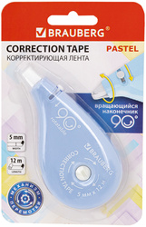 Корректирующий роллер BRAUBERG PASTEL, 5 мм х 12 м, механизм перемотки, корпус голубой
