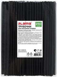 Трубочки для коктейлей прямые пластиковые LAIMA, 8 х 240 мм, черные, комплект 250 штук